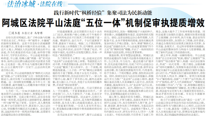 走在前列丨《黑龙江日报》刊发:阿城区法院平山..