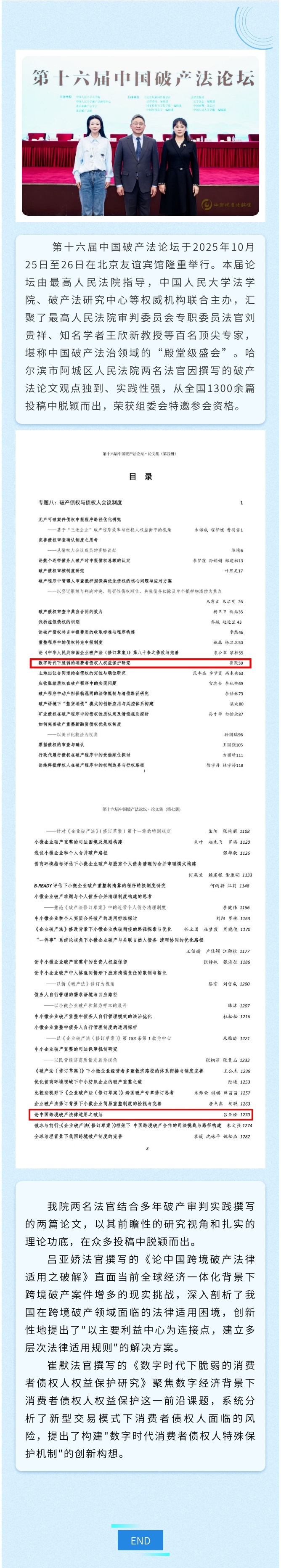 喜报!阿城区法院两篇论文入选《第十六届中国破产法论坛•论文集》