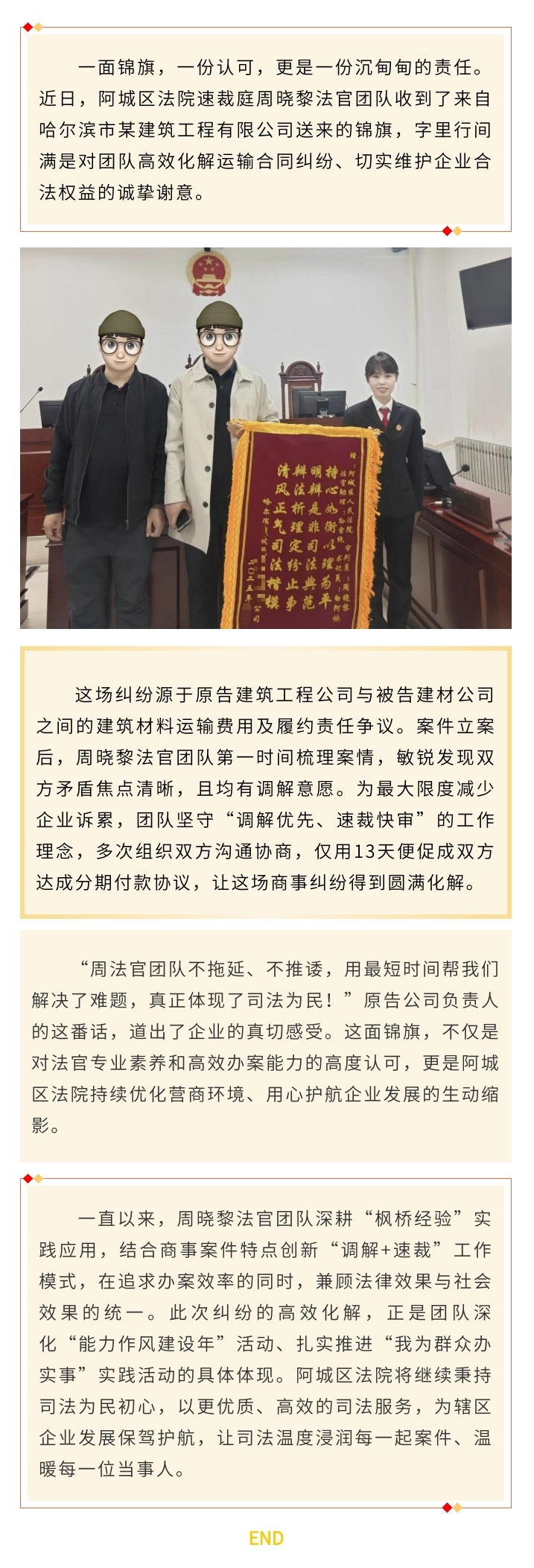 13天速解商事纠纷!阿城区法院司法暖企获点赞