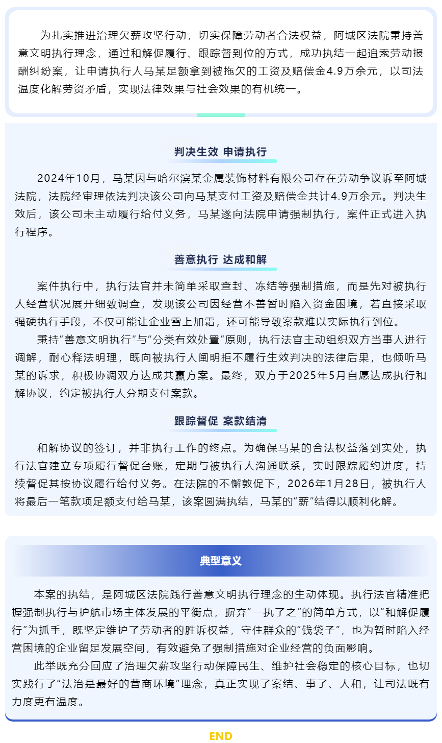 【案说情理法】善意执行解“薪”结 全程督付促履约