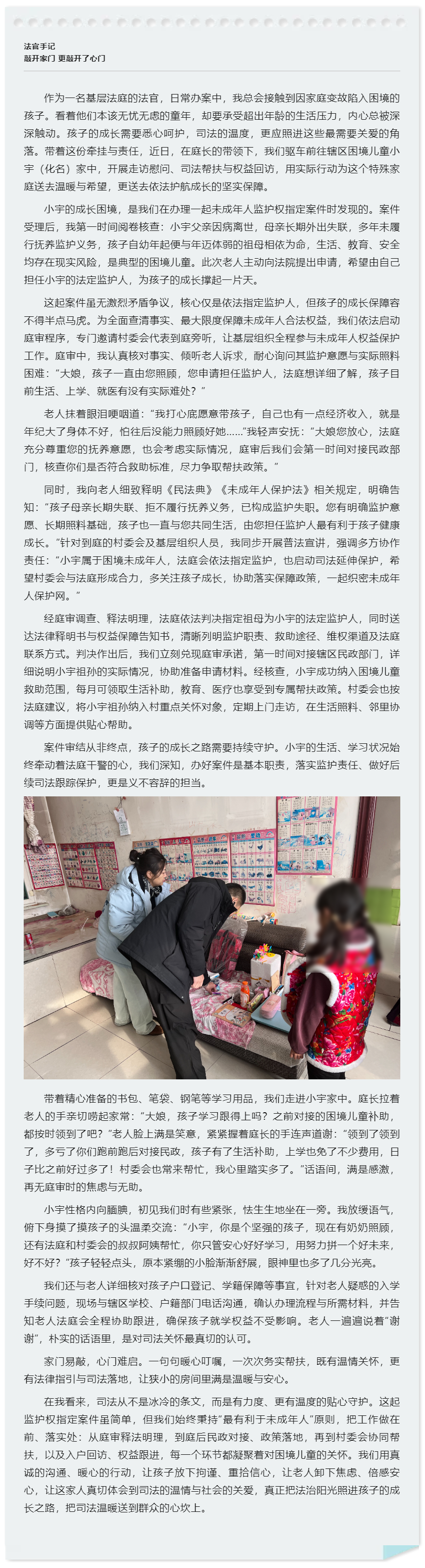 【法官手记】敲开家门 更敲开了心门